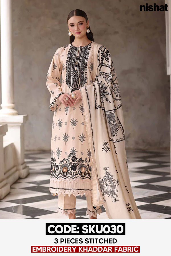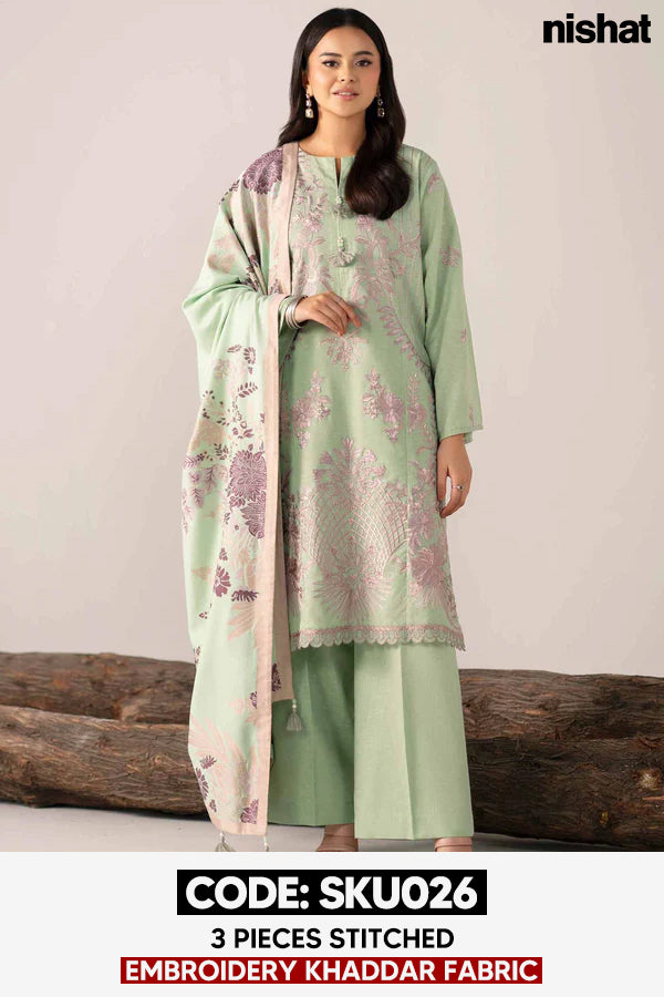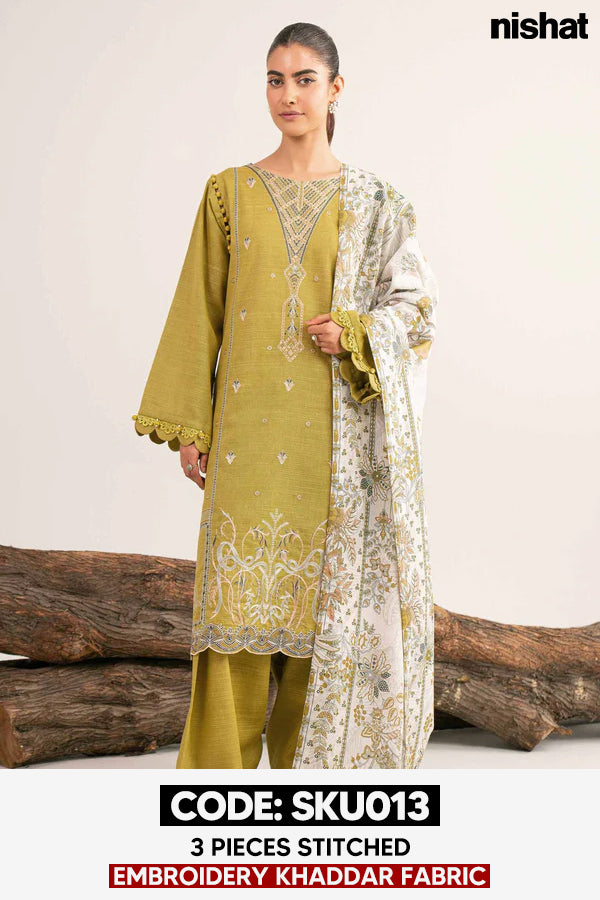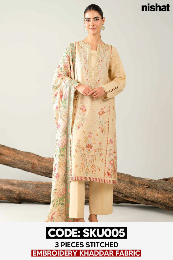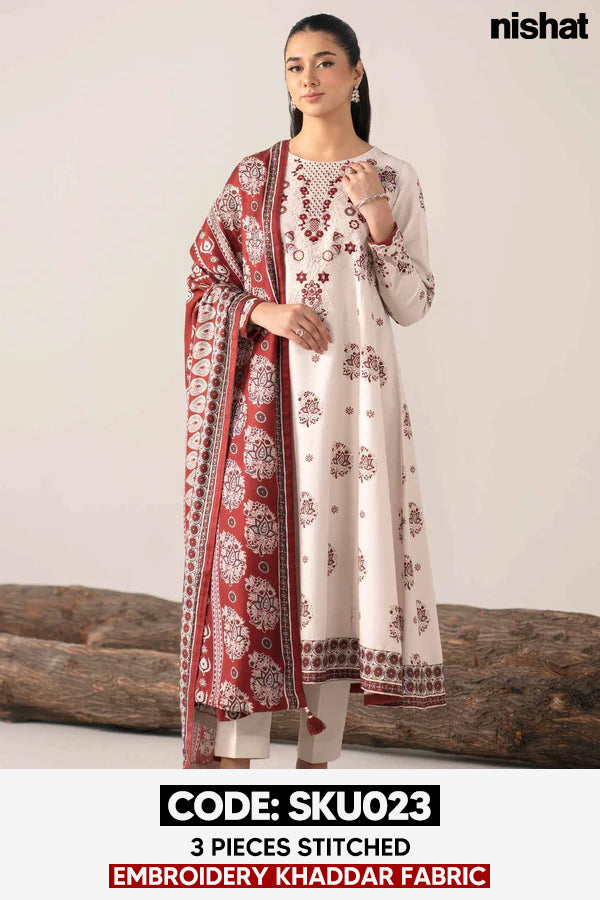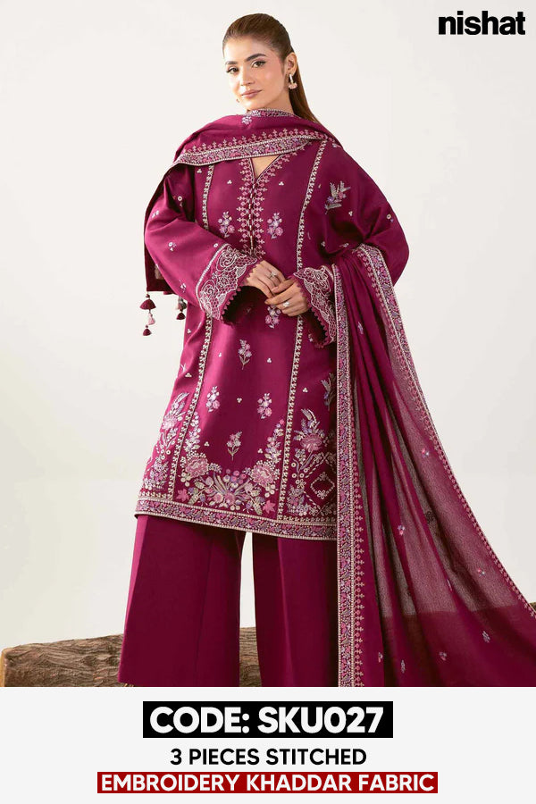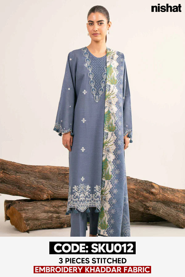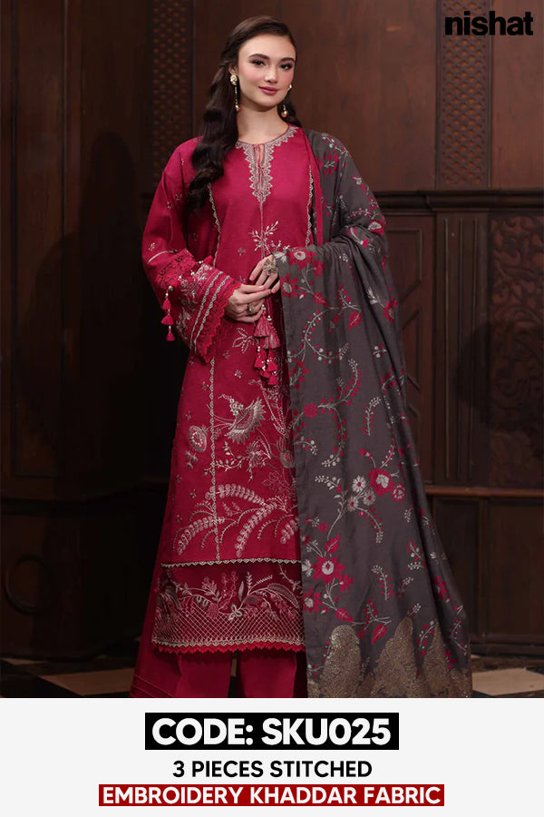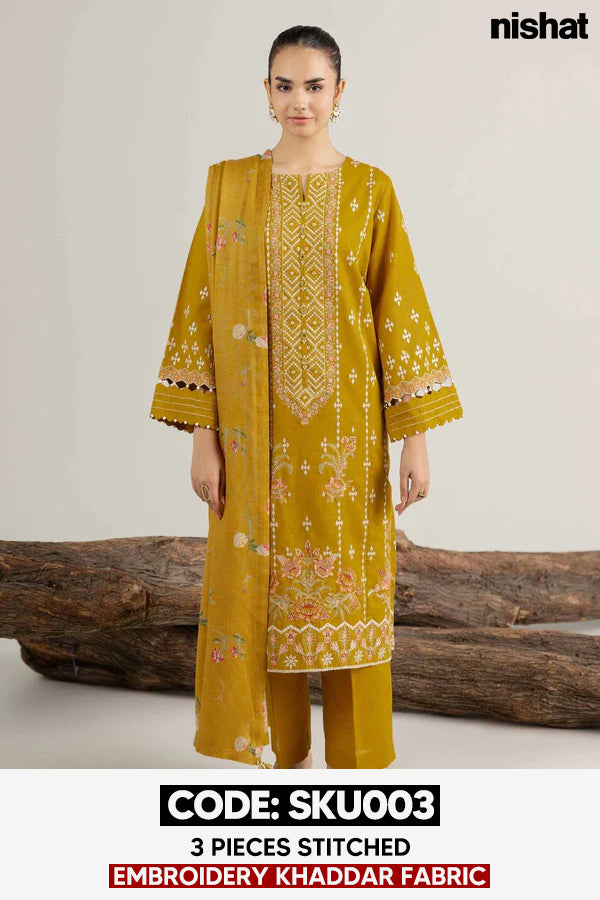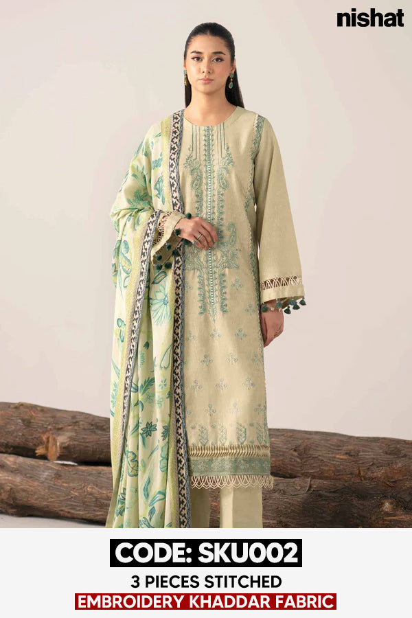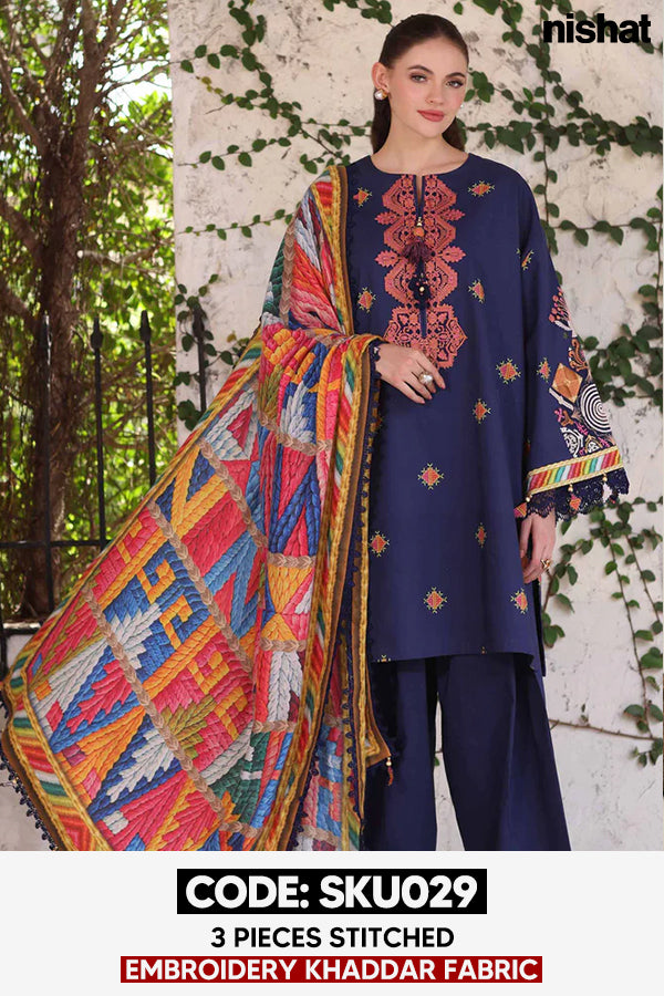 BUY ANY 2 STITCHED 3 PIECE EMBROIDERY KHADDAR SUITS