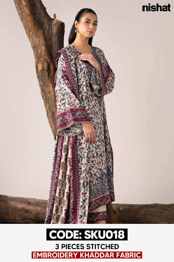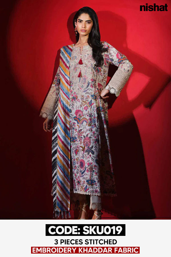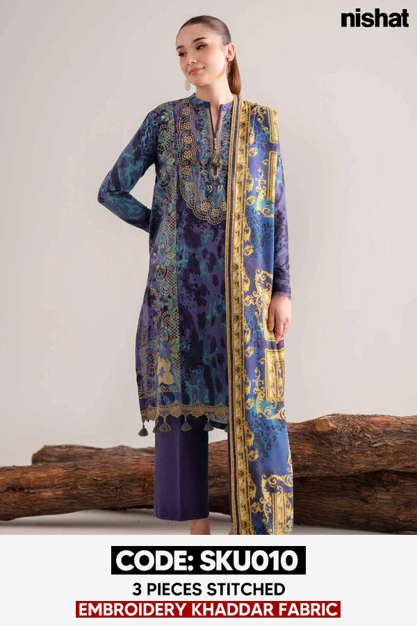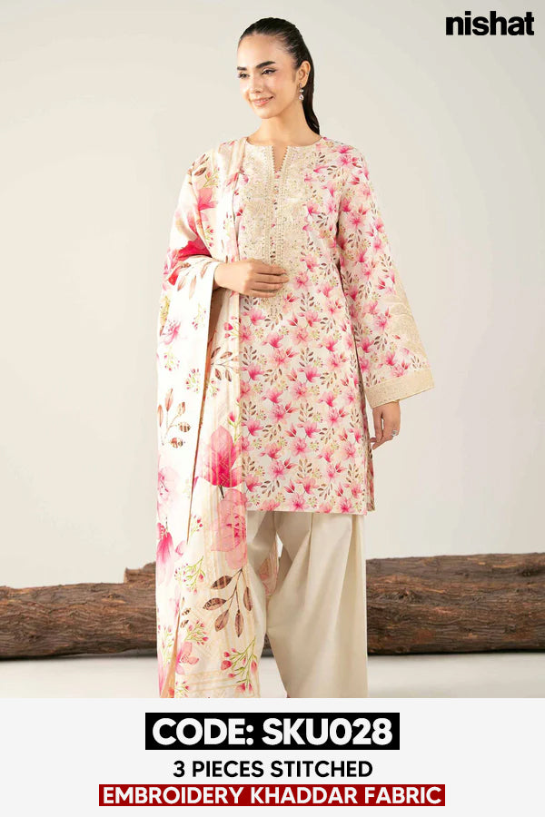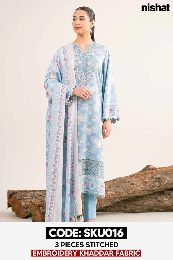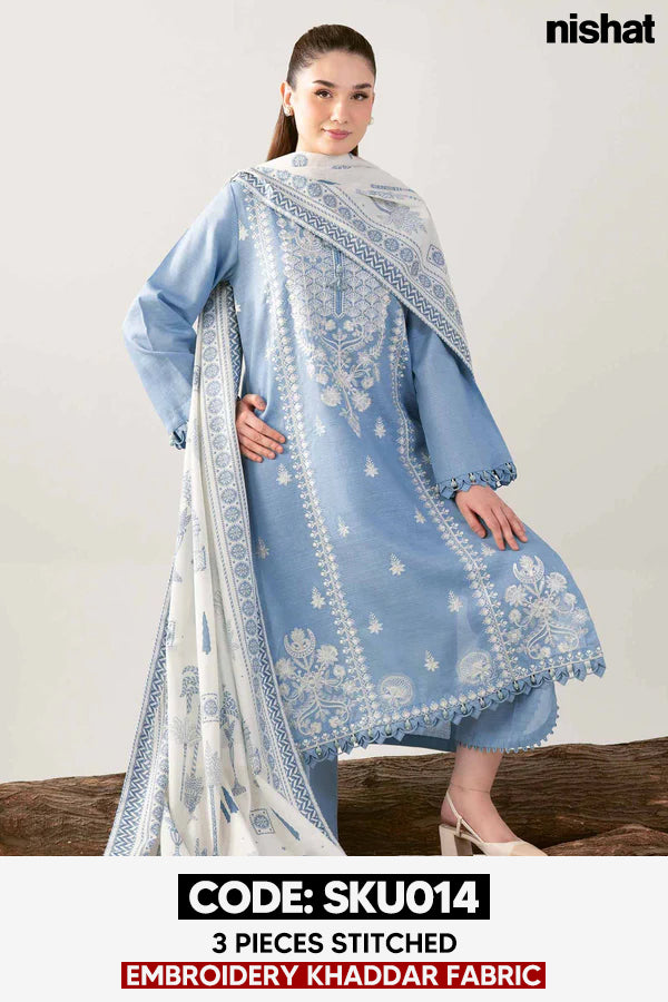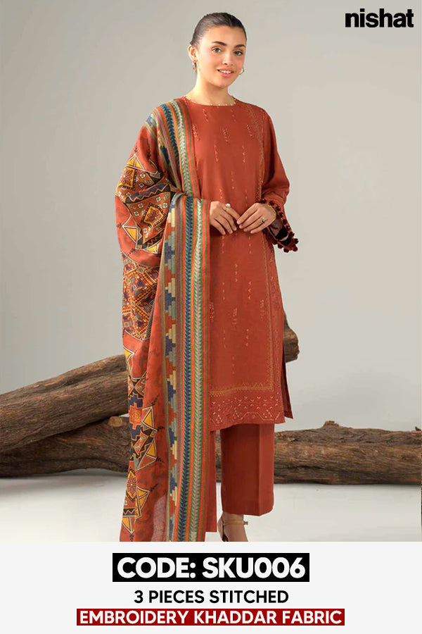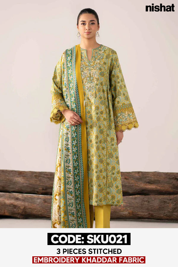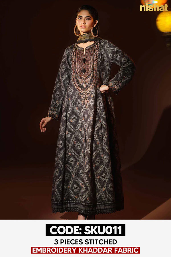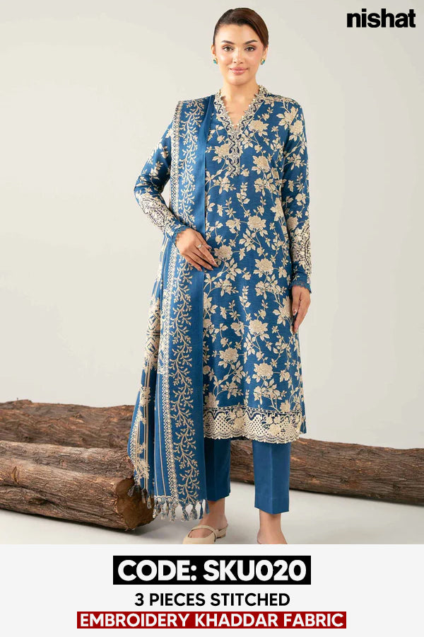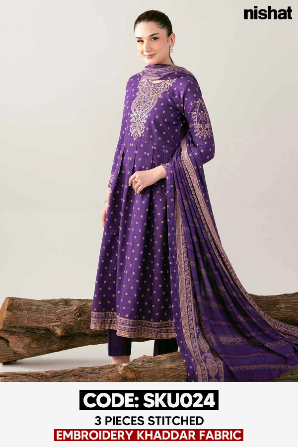 BUY ANY 2 STITCHED 3 PIECE EMBROIDERY KHADDAR SUITS