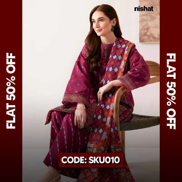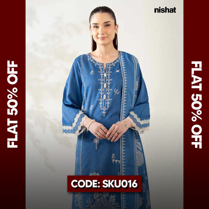 BUY ANY 2 STITCHED 3 PIECE KHADDAR EMBROIDERY SUITS